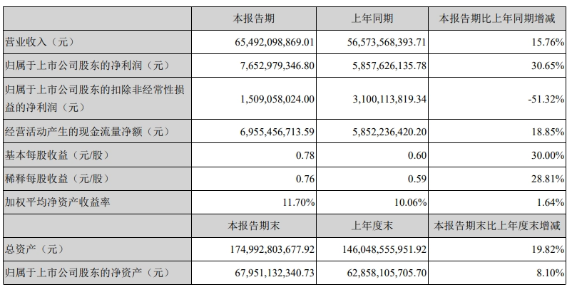 8月31日消息,重庆长安汽车股份有限公司周三晚间发布2023年上半年财报。数据显示,长安汽车上半年营业总收入达到654.92亿元,同比增长15.76%,其中归属于上市公司股东的净利润达到了76.5亿元,同比增长30.65%。
