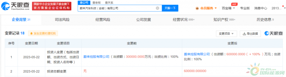 天眼查App显示,蔚来汽车科技(安徽)有限公司发生工商变更,注册资本由30亿增至60亿,增幅100%。