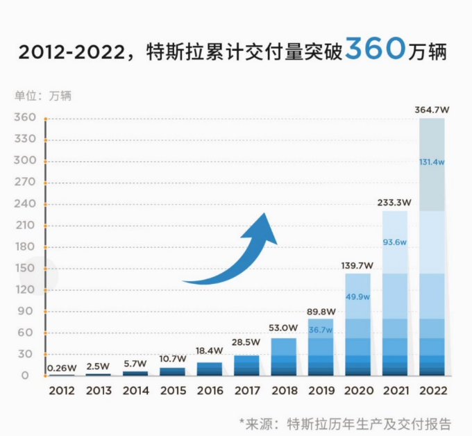 北京时间1月3日,特斯拉发布了2022年全球生产及交付报告。特斯拉以131万辆的电动车交付量,稳坐行业第一。