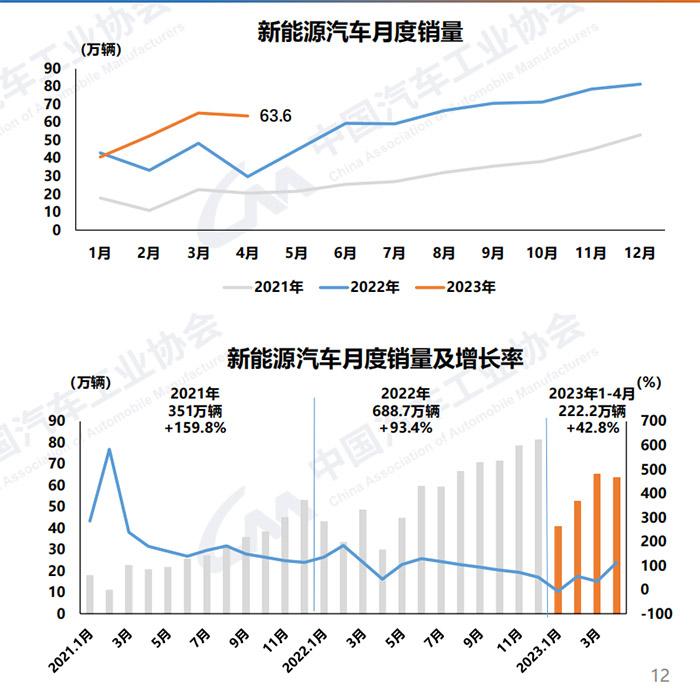 中汽协数据显示,1-4月,新能源汽车产销分别完成229.1万辆和222.2万辆,同比均增长42.8%,市场占有率达到27%。4月,新能源汽车产销分别完成64万辆和63.6万辆,同比均增长1.1倍,市场占有率达到29.5%。